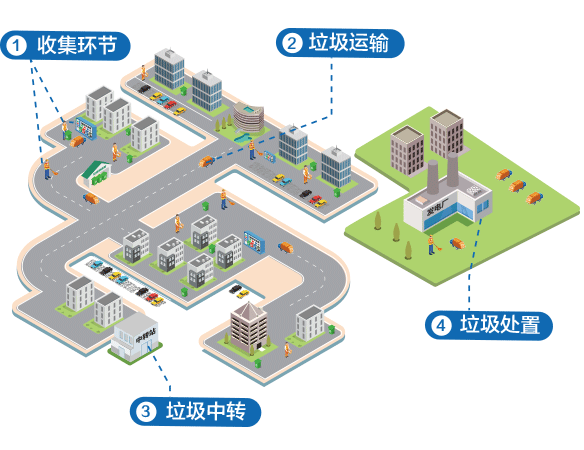 实现对垃圾前端分类、垃圾收运、垃圾末端处理等智能化管理的系统,完成垃圾从产生到消失的全产业链处置管控。通过车载垃圾称重设备, 可以将垃圾收转运量进行量化,做实时监管,有效避免空载,漏报瞒报清运数据情况出现。